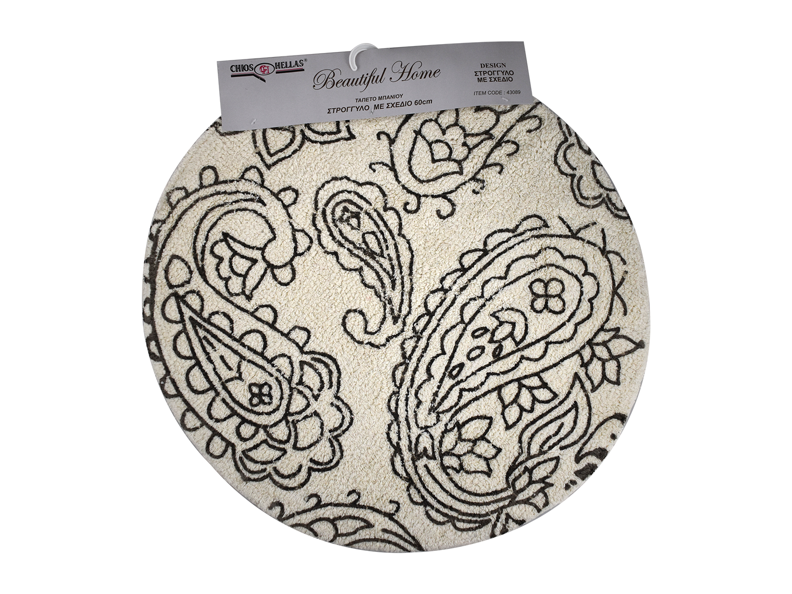 Ταπέτο Μπάνιου Βαμβακερό Στρογγυλό 60cm Μπεζ Μαύρο